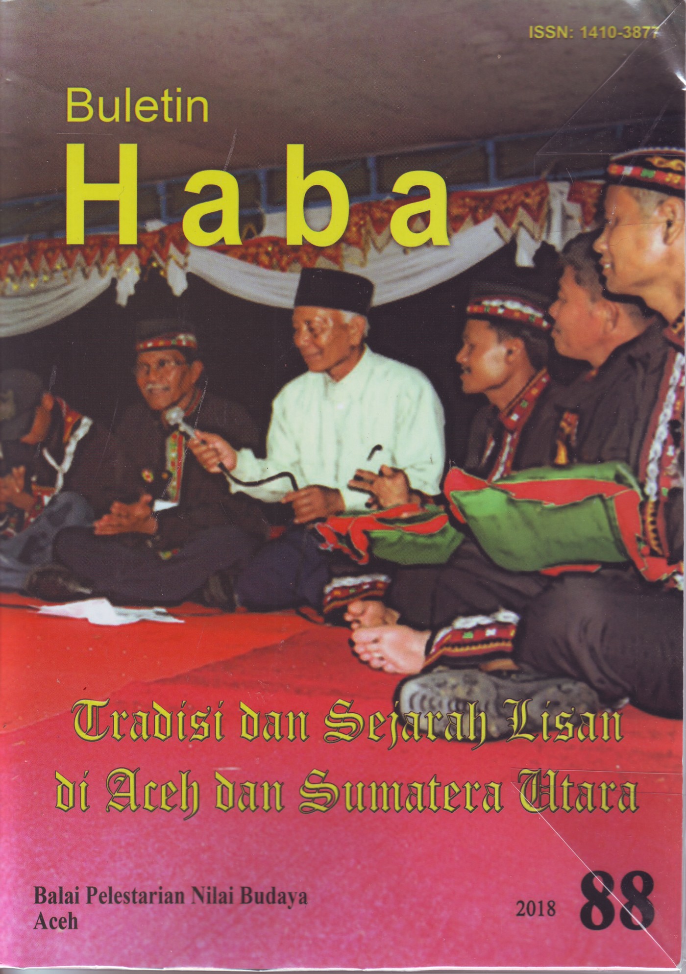 Bulletin Haba No. 88/2018 hadir dengan tema Tradisi dan Sejarah Lisan di Aceh dan Sumatera Utara. Haba kali ini, para penulis memiliki pandangan yang beragam dalam menginterpretasikan hal itu. Ada yang fokus pada pantun, syair-syair, nyanyian rakyat, pepatah bijak dan sebagainya. Berkaitan dengan hal tersebut, ada beberapa artikel yang terdapat di dalam Bulletin Haba kali ini, meliputi (1) Kekeberen : Tradisi Bercerita Dari Generasi ke Generasi oleh Kodrat Adami; (2) Kru Seumangat Sebagai Tradisi Lisan Masyarakat Aceh oleh Nurmila Khaira; (3) Waktu dan Perayaan-Perayaannya oleh Hasbullah; (4) Pantun : Tradisi Lisan Penghantar Pesan Dalam Kehidupan Masyarakat Melayu oleh Fariani; (5) Didong : Tradisi Lisan Masyarakat Gayo oleh Agung Suryo; (6) Kandungan Nilai Perjuangan Pada Nyanyian Rakyat ”Butet” Sumatera Utara oleh Harvina; (7) Tangis Milangi Ekspresi Budaya di Tengah Keharuan oleh M. Liyansyah; (8) Jenis dan Fungsi Qasidah Pada Masyarakat Aceh oleh Sudirman. Pada bagian akhir dari buku ini terdapat cerita rakyat yang berjudul Saudagar Kaya. Cerita ini mengisahkan tentang pengorbanan dari orang tua terhadap anak-anaknya.